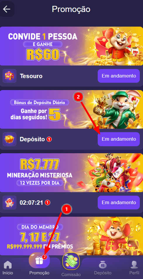 Passo 2: No menu principal, clique em “Promoção” e selecione a opção de pagamento “QR Pay”.